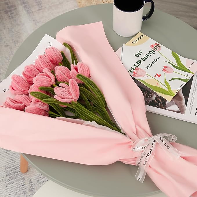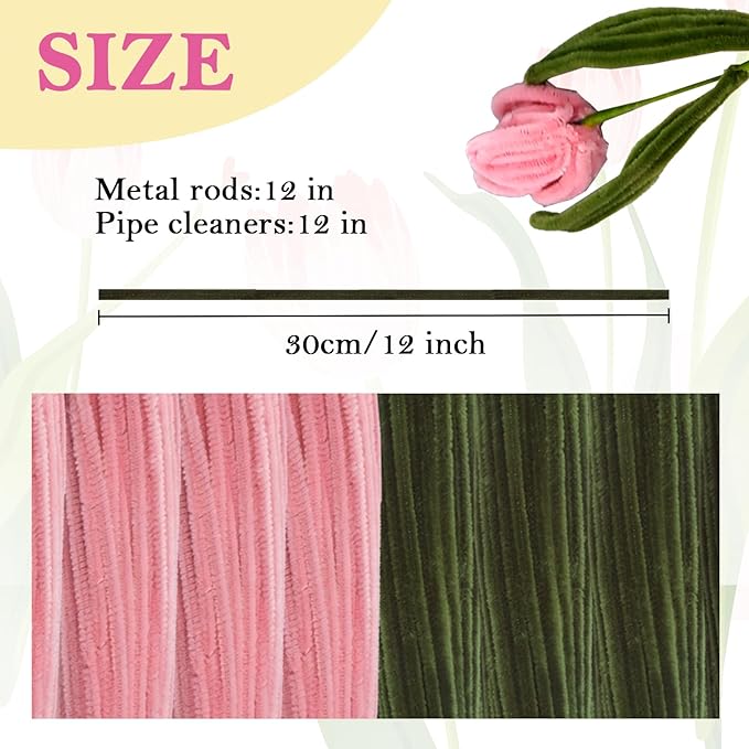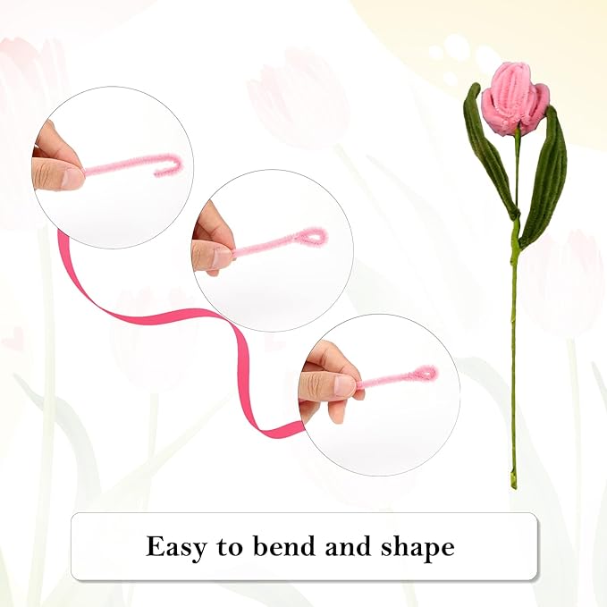 - Creative DIY Kit for Beginners: Pink and green pipe cleaner, soft and beautiful in color. With detailed instructions provided, you can easily craft vivid and realistic tulips, great for beginners and DIY enthusiasts, kids and adults