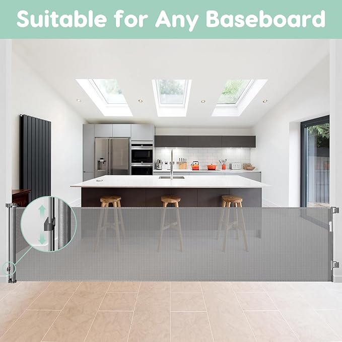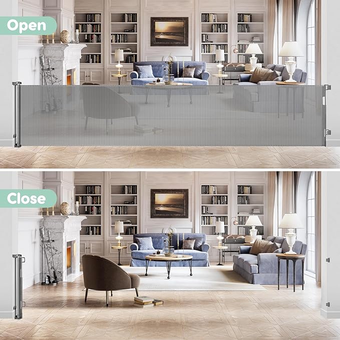 - Saving Space: the extra wide baby gate is retractable gate, so when you're having a party at home or when your babies and pets are not at home you can roll up the mesh and not take up your space.