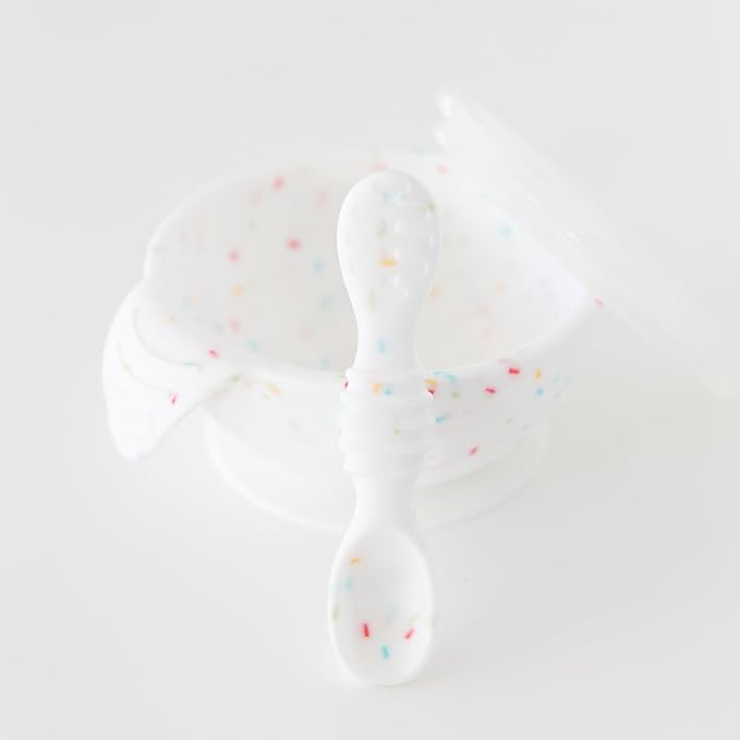 Bumkins Baby Bowls, Silicone Baby Feeding Set, Suction Bowls for Baby and Toddler with Spoon and Lid, First Feeding Set, Platinum Silicone Bowl for Babies 4 Months