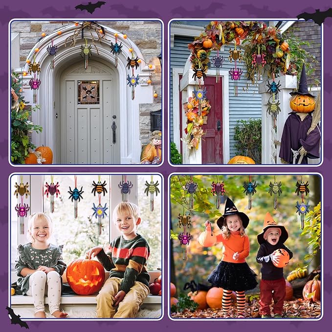 - Craft Project For Kids:Paint your favorite color on the unfinished wooden spider ,and then go through the holes of wood chips and chime rods with a rope,and you will get a unique wind chime.These wooden chimes for outside will sway with the wind and made a joyful sound. Hanging wind chimes in the windows, doors and walls which emit more energy,a easy way to adding a terror Halloween atmospher .
