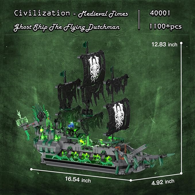 - 【CAPTIVATING GHOST SHIP EXPERIENCE】: Relive legendary tales, explore the enigmatic pirate seas, and embark on an adventure inspired by the Flying Dutchman ghost ship. Enjoying an unparalleled creative and building experience as you recreate this ghost ship that can never dock. This pirate ship toy building set offers modeling enthusiasts and pirate aficionados an extraordinary assembly and display experience.