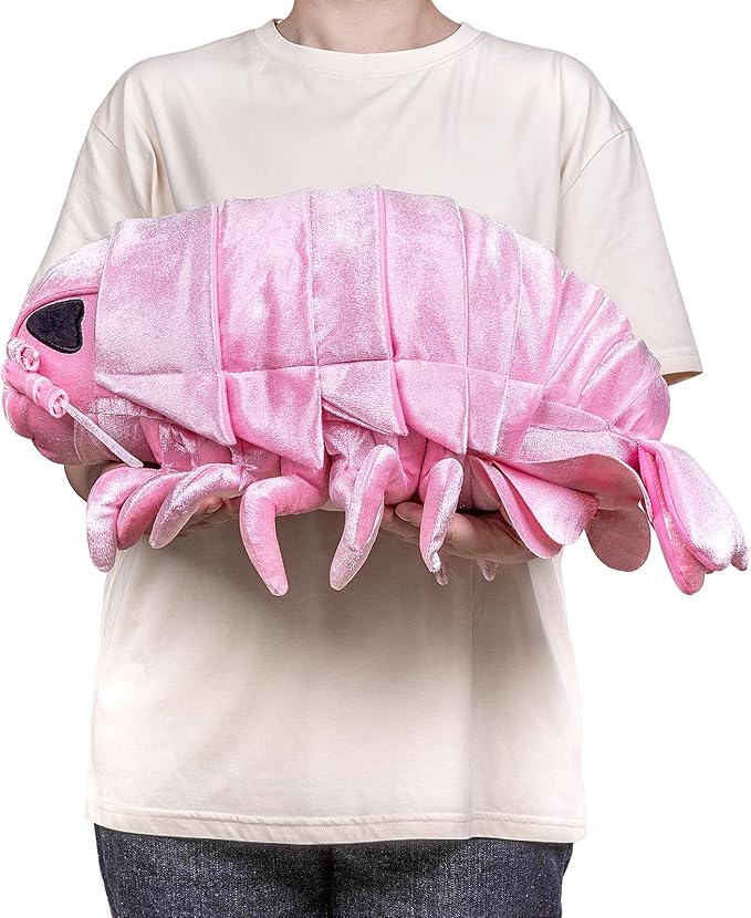 - REALISTIC PLUSH TOY: This is a lifelike large Isopod model toy, the details are realistic. The adorable face and squeezable body of our isopod crustaceans plush are made from premium cloth and filler. its pink fur is smooth and soft, black color eyes and realistic Mouth design, thick shell and claws, the overall shape design is realistic, and the face design is unique, very realistic.