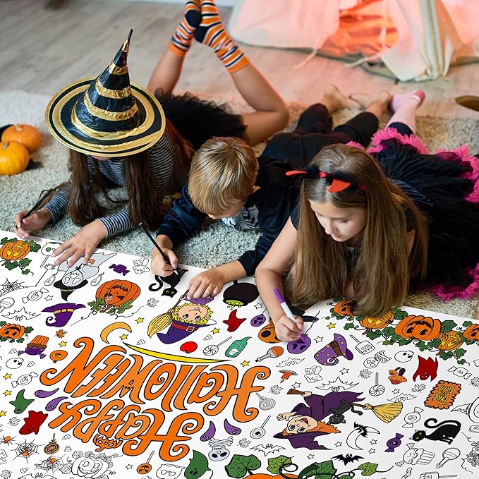 - [Beautifully Designed Crafts]:Great Halloween gifts for kids!Get ready to celebrate Halloween in the most creative way! This coloring poster/tablecloth is perfect for kids and adults who love to express their artistic side.