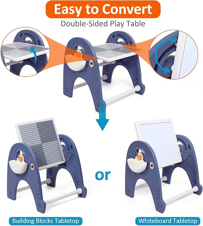 - MULTIFUNCIONAL ACTIVITY TABLE: The kids activity table has 2-sided play surface: block building and magnetic whiteboard. You can convert it easily from building block table to easel table by lifting the tabletop. Entertain your kids for hours with this toddler activity table, building block table, drawing table, and sensory table.