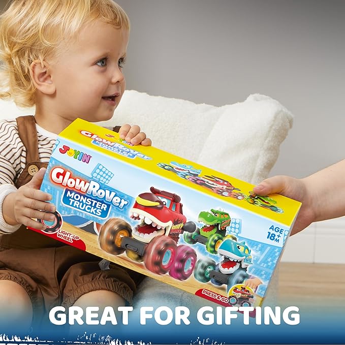 - Glow Rover Monster Truck Adventures!: Dive into Play period with our Shark, Bull, and Tyrannosaurus toy cars! Each one is a vibrant light-up monster truck that's perfect for toddlers, boasting bright wheels that dazzle with every roll.