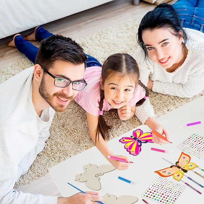 - 【Premium Materials】Our butterfly crafts for kids are made of high-quality natural wood,which is thicker than other wooden slices. Each piece is polished, with a smooth surface and neat cuts. The edges are not sharp, ensuring safety and environmental friendliness. It is easy to write on or paint.In addition to the painting brushes, we also have a box of watercolor pens,allowing children to change their designs according to their own ideas and unleash their creativity!