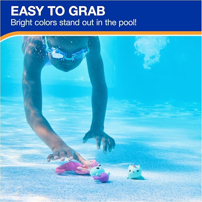 - BRIGHT COLORS: These kids pool toys are easy to spot and locate at the bottom of the pool with bright colors and designs for endless outdoor games with friends and family!