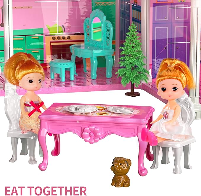 - Fun and Educational: Kids pretend to open the window, greet, and have breakfast. Girls play stimulate imaginative role-playing design. We recommend to install bulbs for the dolls girls(Not include), so that the girls home toy looks more like a fairy tale