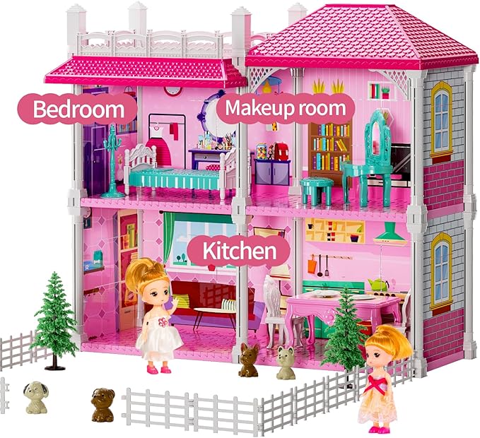 - Explore A Dolls' Toy: This villa playset(17.7*20.8*16.1 in) for kids features 2 storeys, 4 rooms, including family bathroom, sitting room, dining room, food toy and 2 doll toy figures, which encourages kids' hands-on ability to paly girls toys