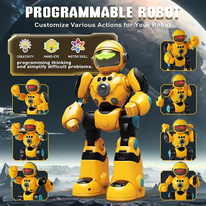 - Smart RC Robots Toys for Kids Creativity: A simplified remote control system makes it easy for your kids to program and customize this robot toy to perform a series of actions, and then the intelligent toy robot will record and execute the commands. It will be a practical way to help kids learn simple programming thinking, and unlock hidden creative genius