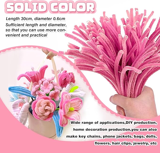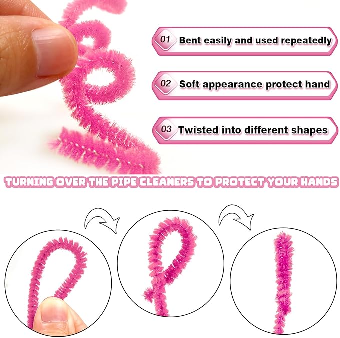 - Size: 100pcs pink pipe cleaners; 0.24 X12 inch (6 mmx300 mm). Enough quantity to meet your various needs of DIY craft creations