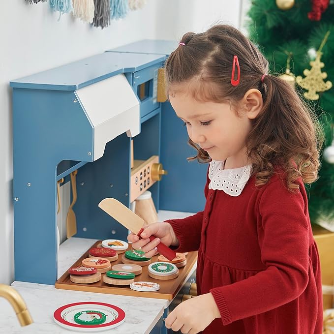 Teamson Kids Cuttable Christmas Cookie Play Wooden Food Set with Sliceable Cookies, Decorations, and Cookie Sheet - for 3 yrs. and up - Multi