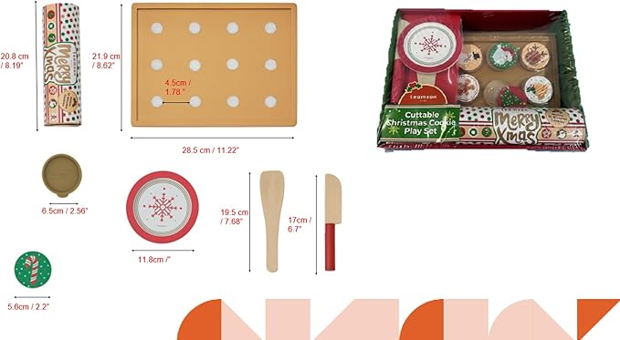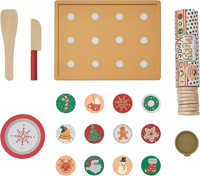 Teamson Kids Cuttable Christmas Cookie Play Wooden Food Set with Sliceable Cookies, Decorations, and Cookie Sheet - for 3 yrs. and up - Multi