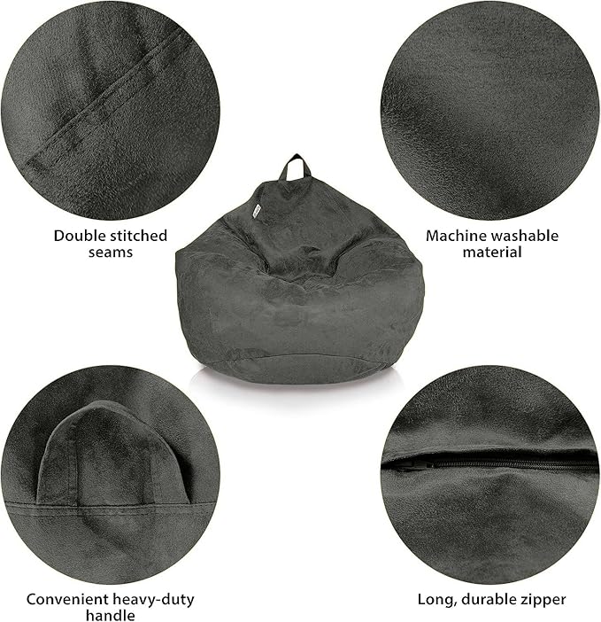 Bean Bag Stuffed Animal Storage Or Cover | No Filler | Extra Large | for Adults Or Kids | Double Stitched | Durable Zipper | Premium Microsuede