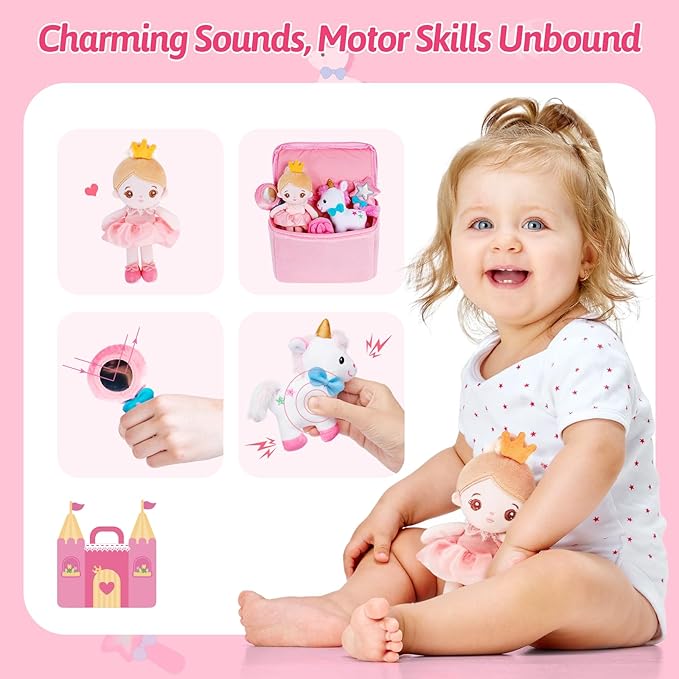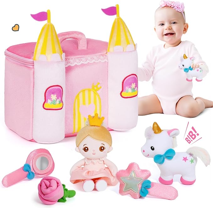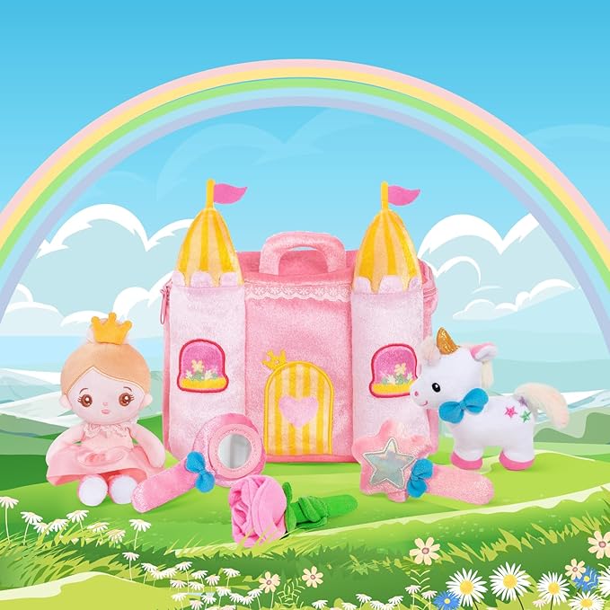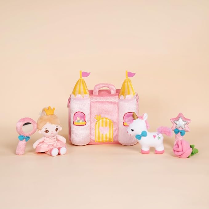 OUOZZZ Princess Castle Toys for 1-3 Year Old Girl Baby Doll Plush Toy House Stuffed Animal Toy Set - Sensory Educational Toys for 12-18 Months Infant - Fisrt Birthday Gifts for Toddler