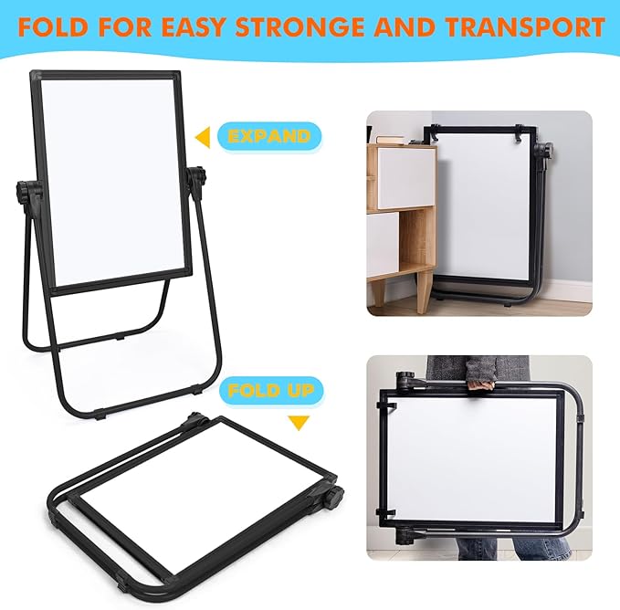 • Organize your space: The canvas bag can hold all art supplies within reach during painting, allowing kids to focus more on their creativity. The whiteboard for kids can be folded for convenient storage or carried out as a nice outdoor easel for kids