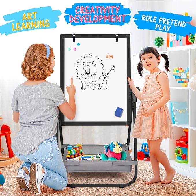 • Adjustable Height: Our art easel for kids easel can freely adjust its height from 22" to 44", growing with kids ages 2-4 4-8 9-12. The toddler easel for kids is ideal for children's word spelling, number counting, artistic drawing, math games