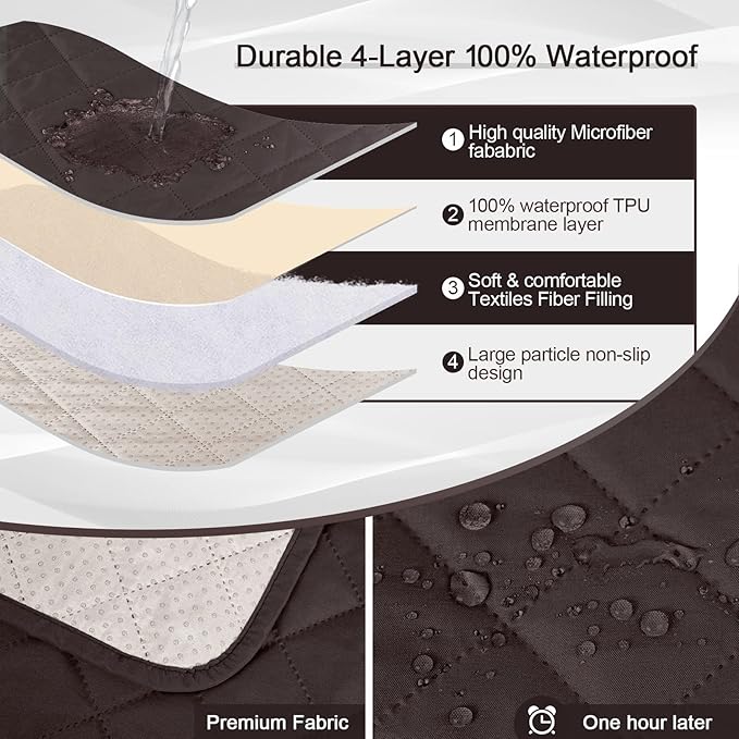 KinCam 100% Waterproof Recliner Chair Cover, Reclining Couch Covers for Pets, Dogs, Recliner Couch Slipcover Furniture Protector with Elastic Straps for Kids(28", Chocolate)