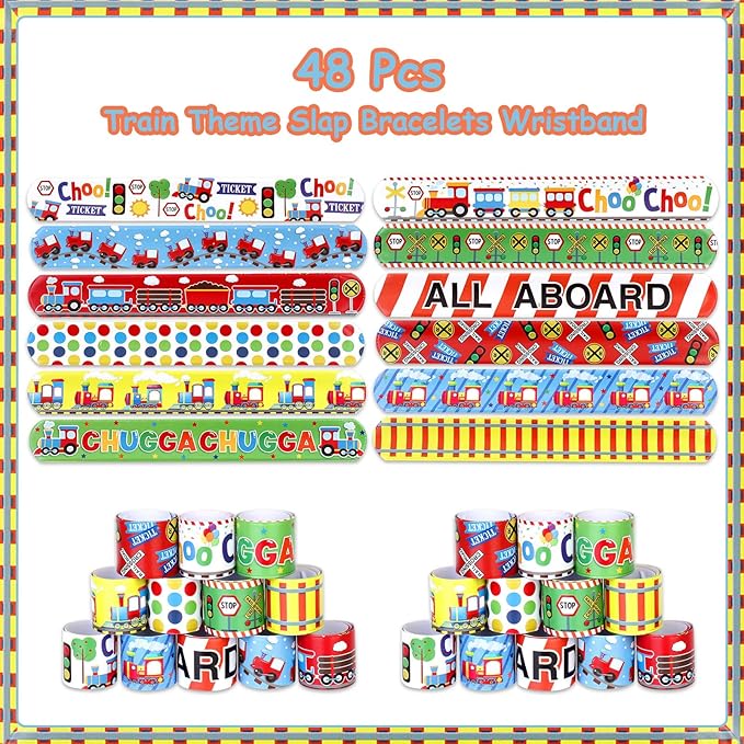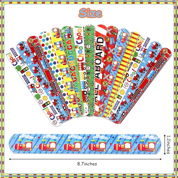 - Train Party Favors: You will receive 48pcs slap bracelets in 12 styles, 4 pieces of each style. And the size is 8.7 x 2.2 inches. Adequate quantity and various colors offer you multiple options; Also, you can share with your friends