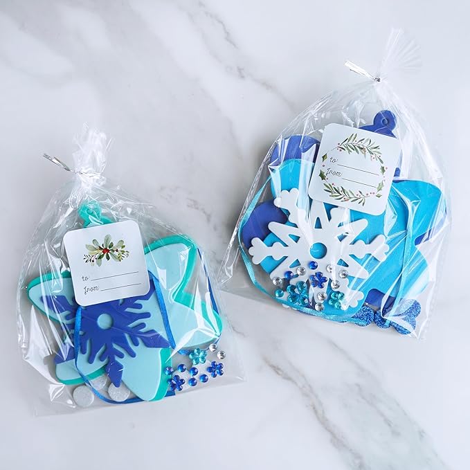 - Portable & Easy to Store: Our Christmas snowflake ornaments craft kits are compactly packed for convenient storage and portability, making them perfect for on-the-go activities. The packaging suits classrooms, playgroups, Christmas parties, group activities, and other social or educational settings. The kit comes with cellophane bags and twist ties for creating individual gift sets, and the included gift stickers add a special winter and festival touch. Perfect for group activities.