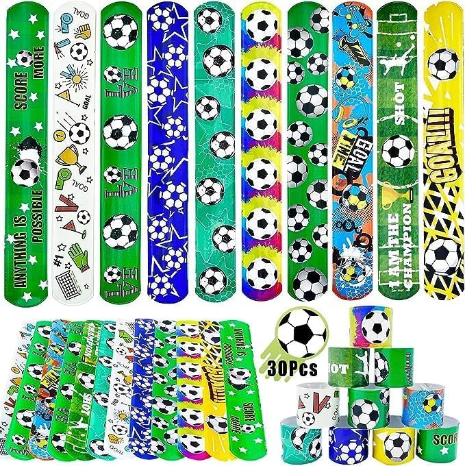 Viicoor Soccer Slap Bracelets 30PCS Snap Bracelet Wrisrtband for Party Favors Basket Bag Filler School Prizes Gifts Party Favors Bulk