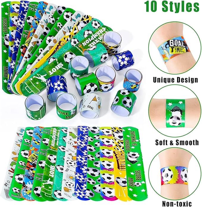 - โฝ๐๐ซ๐๐๐ญ ๐๐จ๐ซ ๐๐๐ซ๐ญ๐ข๐๐ฌ ๐๐ง๐ ๐๐ฅ๐๐ฒ๐๐๐ญ๐๐ฌโฝWhether it's a birthday party or a playdate with friends, these slap bracelets make for an exciting and entertaining activity. Kids can trade and share their favorite designs, creating lasting memories and fostering friendship.