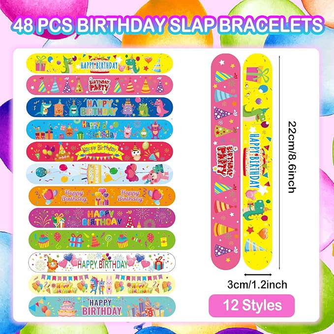 Viicoor Birthday 48PCS Slap Bracelets Snap Bracelet Wrisrtband for Party Favors Basket Bag Filler School Prizes Exchanging Gifts