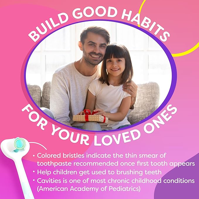 - Safe and Gentle Cleaning: Our toothbrushes are made with your child's safety in mind. The super-soft bristles are ideal for infants from 6 to 12 months and older, ensuring a safe and gentle cleaning every time.