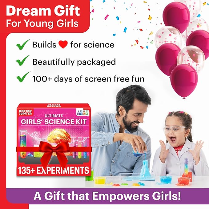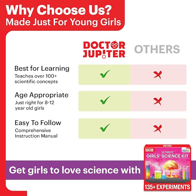 - ✅ MOST COMPREHENSIVE SCIENCE KIT FOR GIRLS: Introducing Doctor Jupiter Ultimate Girls' Science Kit for girl kids with over 135 amazing science experiments ranging from volcano and explosive science to water and crystal growing science.