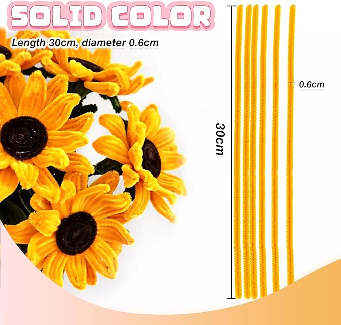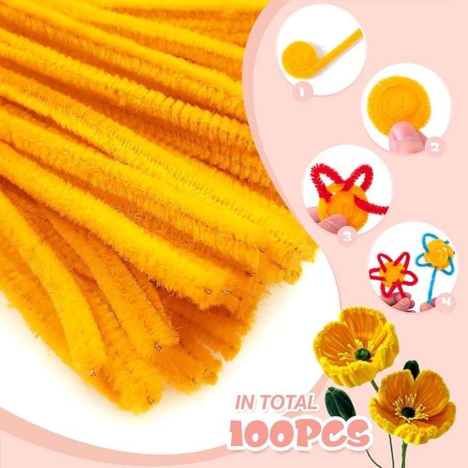 TOAOB 100pcs Pipe Cleaners Crafts Supplies Golden Yellow Pipe Cleaners Chenille Stems 6mm x 12 Inch Fuzzy Pipe Cleaners for DIY Art Crafts Decorations