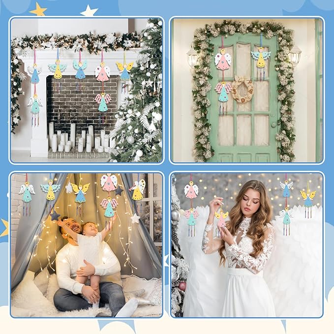 - Great Christmas Gift for kids:DIY wooden wind chimes to Paint are designed into angel shape, ideal Gifts for Christmas, Thanksgiving, wedding, birthday party and daily DIY Christmas craft use for girls boys. Which is also suitable Christmas decoration to create holiday atmosphere for your house, bringing more joy for your family.