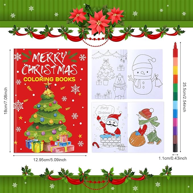 Funrous 24 Pcs Christmas Coloring Book for Kids Bulk with 24 Crayons, Christmas Activity Books with Marker Xmas Stocking Goodie Bag Stuffers for Holiday Students Classroom Gifts Party Favors (Lovely)