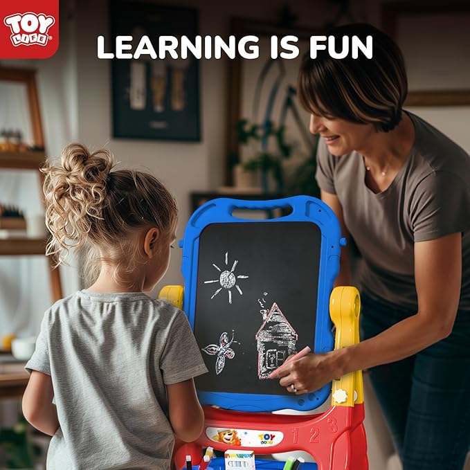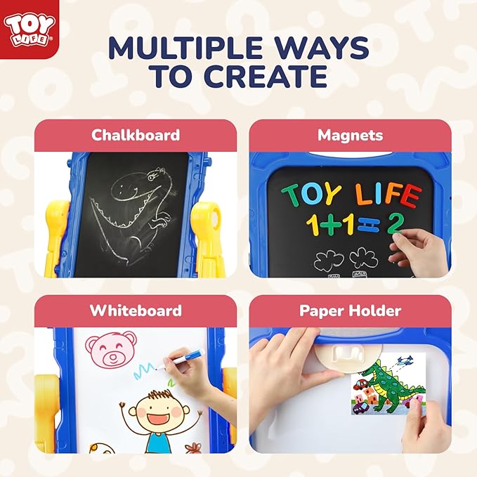 TOY Life Easel for Kids Art Easel for Toddler Easel - 4in1 Double-Sided Large Magnetic Board Kids Chalkboard Easel Drawing White Board for Kids Magnetic Letters & Numbers Birthday Gifts for Kids