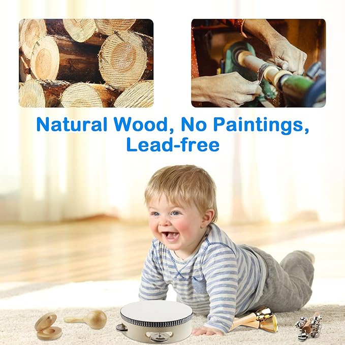 - 【100% Natural Wood for Safe Use】This natural wooden musical toy set, including shaking, tapping, beating and blowing instruments, doesn't have any harmful water paint or chemical smell. Chriffer's target is to provide an extreme safe playing environment for kids