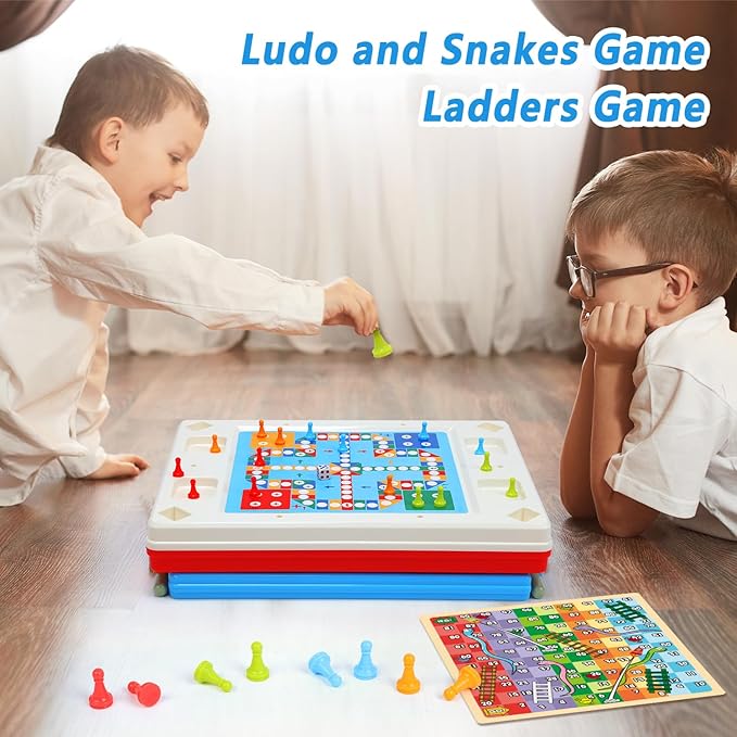 - Enhanced Entertainment Value: The easel's bottom doubles as a game panel, with included game cards for Ludo and Snakes & Ladders, plus colored chess pieces and dice. This feature adds extra dimensions of play and enjoyment for children.