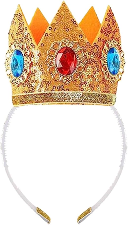 Princess Peach Costume Dress up Accessories for Girls Peach Gloves Tiara Crown Wand Brooch Earrings Halloween Cosplay Accessories Christmas Gifts Set (White Peach)