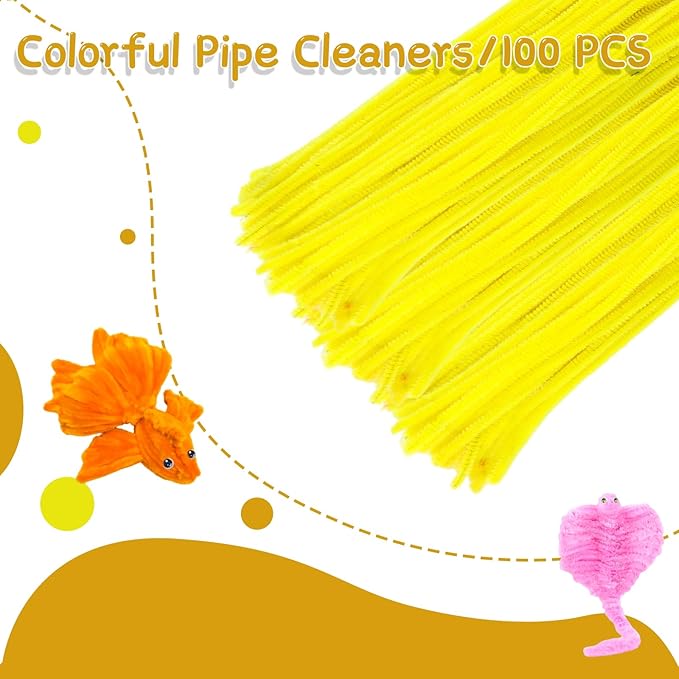 - What Can You Get: 100 pieces of pipe cleaner craft Yellow chenille stems, meet your crafting needs, you can make it into many lovely and beautiful handicrafts. Come and make various beautiful decorations, crafts for your Christmas party!
