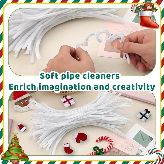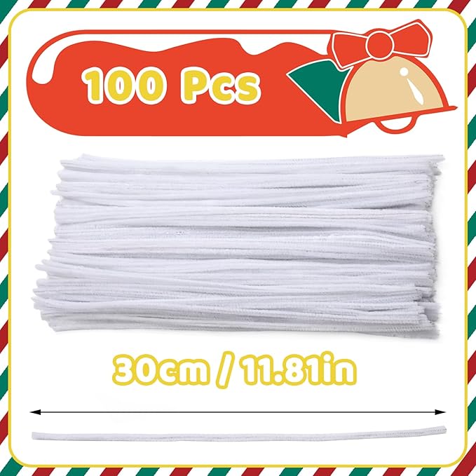 Pipe Cleaners, 100PCS Christmas Pipe Cleaners Craft Supplies, White Pipe Cleaners Bulk Fuzzy Sticks for DIY Art and Craft Projects Home Decoration