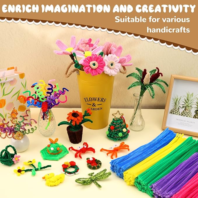 - Perfect Present: Pipe cleaners craft supplies are ideal accessory for craft projects such as making flowers, vegetables, animals, holiday ornaments, etc.Suitable for classroom activities, family activities, craft projects, Christmas parties.