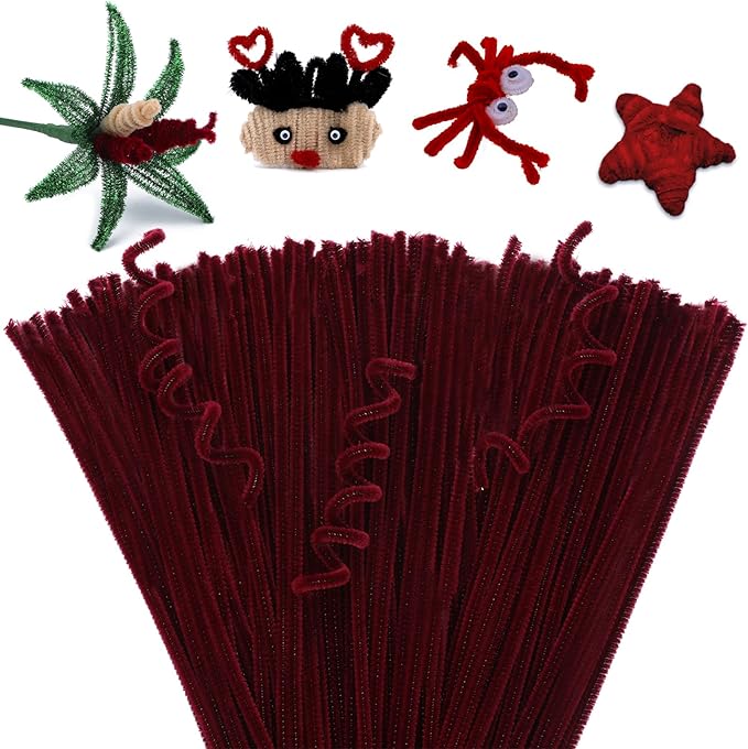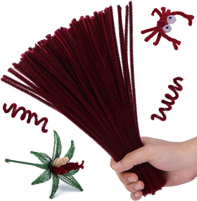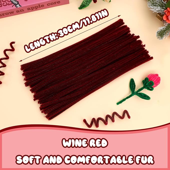 Pipe Cleaners, 100PCS Christmas Pipe Cleaners Craft Supplies, Wine Red Pipe Cleaners Bulk Fuzzy Sticks for DIY Art and Craft Projects Home Decoration