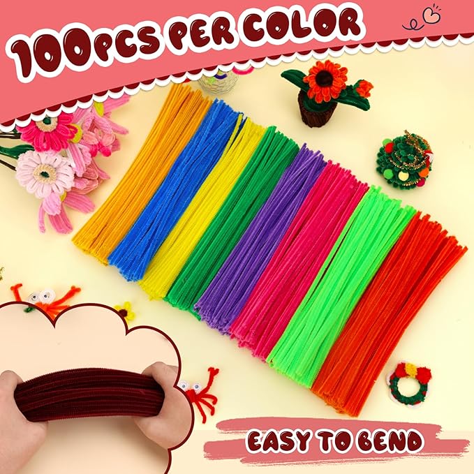 - Perfect Present: Pipe cleaners craft supplies are ideal accessory for craft projects such as making flowers, vegetables, animals, holiday ornaments, etc.Suitable for classroom activities, family activities, craft projects, Christmas parties.