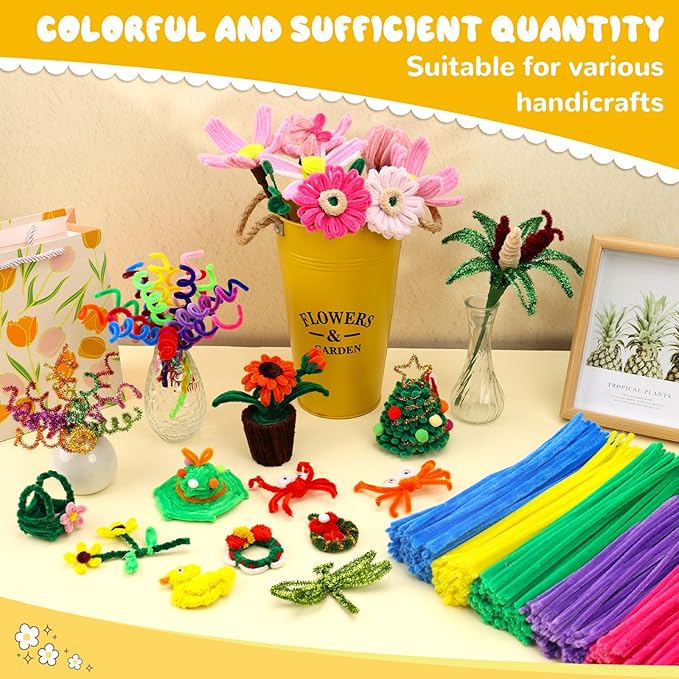 - Perfect Present: Pipe cleaners craft supplies are ideal accessory for craft projects such as making flowers, vegetables, animals, holiday ornaments, etc.Suitable for classroom activities, family activities, craft projects, Christmas parties.