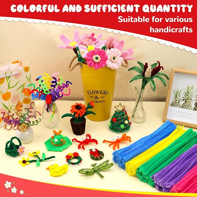 - Perfect Present: Pipe cleaners craft supplies are ideal accessory for craft projects such as making flowers, vegetables, animals, holiday ornaments, etc.Suitable for classroom activities, family activities, craft projects, Christmas parties.