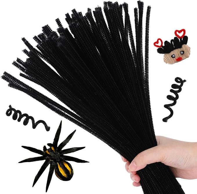 Pipe Cleaners, 100PCS Christmas Pipe Cleaners Craft Supplies, Black Pipe Cleaners for Hair Pipe Cleaners Bulk Fuzzy Sticks for DIY Art and Craft Projects Home Decoration