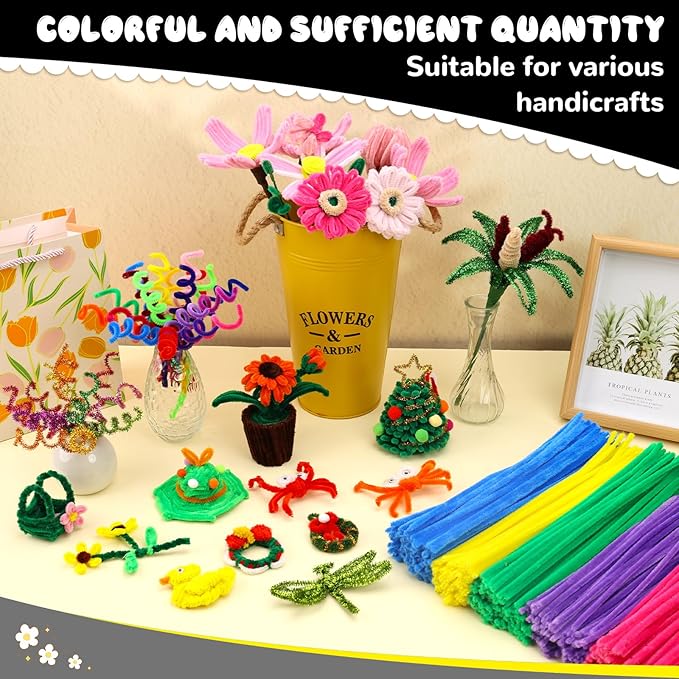 - Perfect Present: Pipe cleaners craft supplies are ideal accessory for craft projects such as making flowers, vegetables, animals, holiday ornaments, etc.Suitable for classroom activities, family activities, craft projects, Christmas parties.