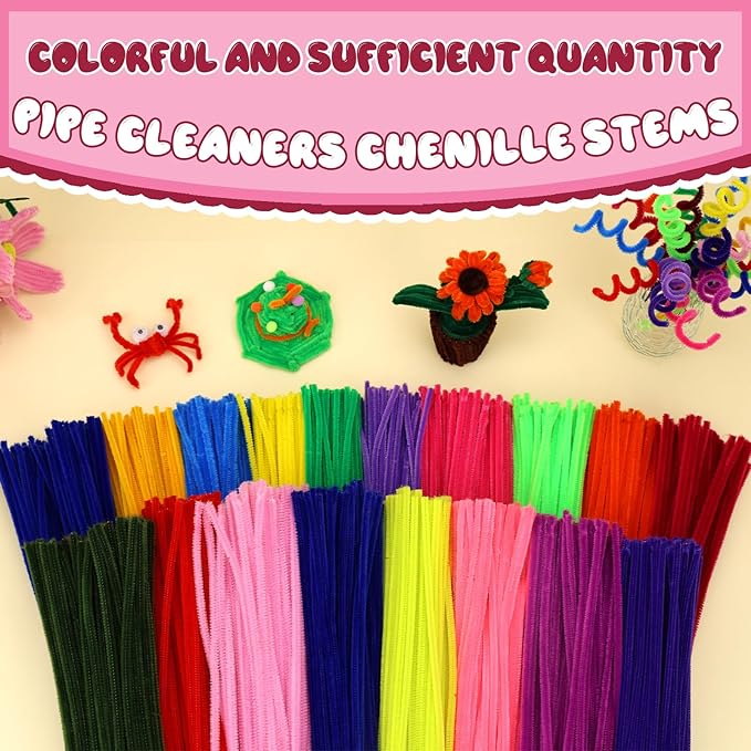 - Premium Quality: Pipe cleaners for cleaning are made of premium wire and fiber, flexible, durable, easy to twist, fold or wrap into different shapes you want.Colorful chenille stems pipe cleaners, not easy to fade, safe and harmless.