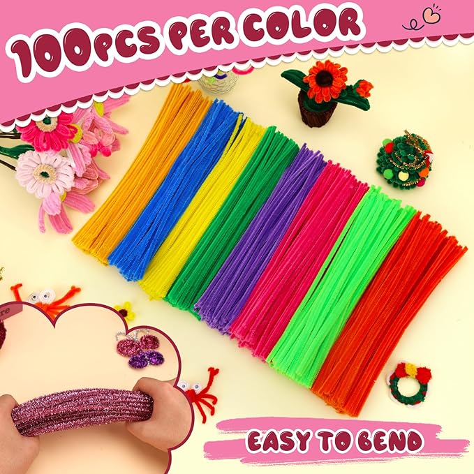 - Perfect Present: Pipe cleaners craft supplies are ideal accessory for craft projects such as making flowers, vegetables, animals, holiday ornaments, etc.Suitable for classroom activities, family activities, craft projects, Christmas parties.