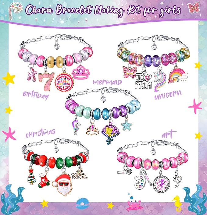 - Perfect gift that surprises at first sight: BDBKYWY DIY charm bracelet making kit comes with a beautiful box, Whether it's a birthday, Christmas, Valentine's, Thanksgiving, or New Year's gift, this kit is perfect for any occasion. Best gift choice for Christmas Stocking Stuffing. Gifts for 5 6 7 8 9 10 11 12 year old girl.