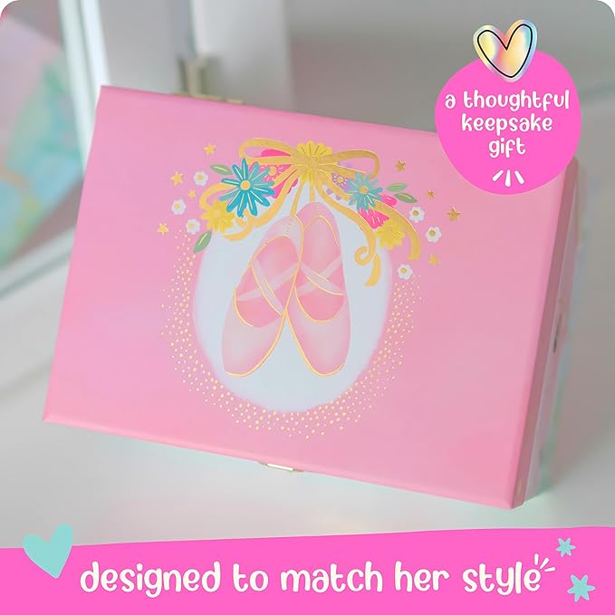 - Elegant Design - Elevate your daughter's ballet décor with an exquisitely designed jewelry box for little girls. The intricate details on the kids jewelry boxes are crafted by curated artists & boast dazzling ballerina details that captivate and charm