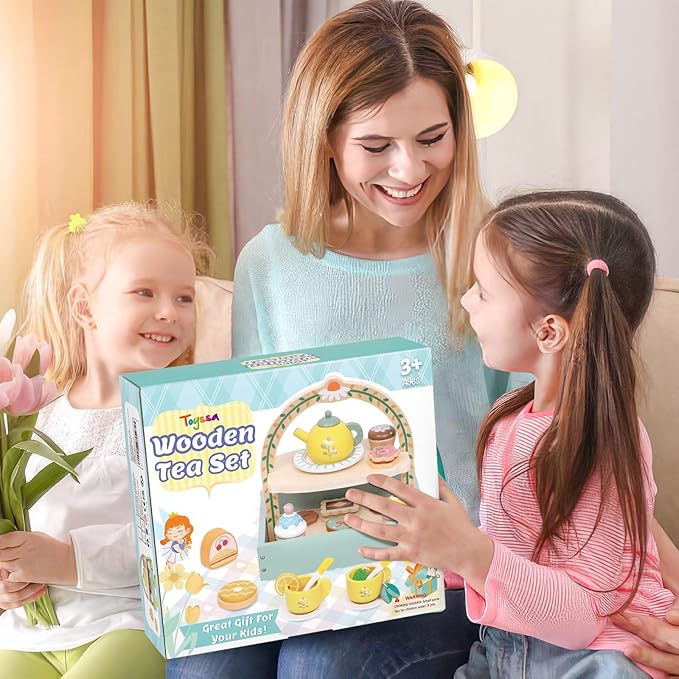 - IDEAL GIFT: Wooden tea sets are ideal for 2 3 4 5 year old little girls and can be used with other play kitchen accessories, our products are ideal for birthday, Christmas, New Year gifts for kids